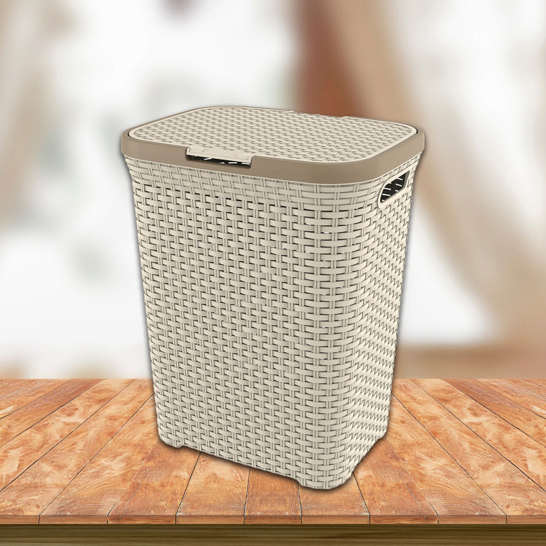 Prostrana i elegantna korpa za veš sa atraktivnim ratan izgledom, savršena za svako kupatilo. Obezbeđuje uredno skladištenje veša, sa praktičnim poklopcem koji sprečava širenje mirisa i bočnim otvorima za lako prenošenje. Izrađena od kvalitetne plastike koja je jednostavna za održavanje i dugotrajna u upotrebi.